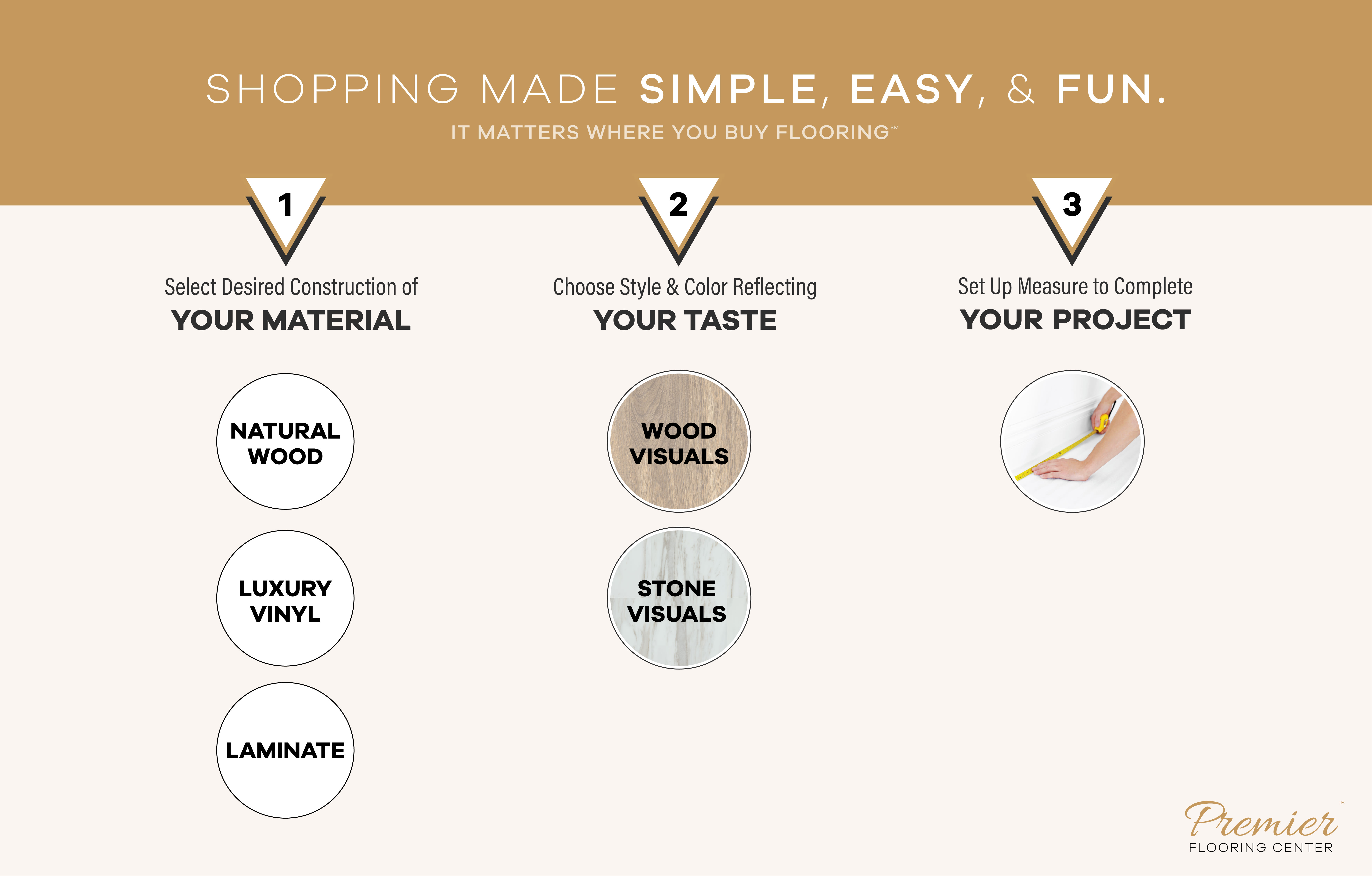 When it comes to measuring, it’s always best to leave it to the professionals at your Premier Flooring Center. They will ensure you receive an accurate cost estimate before scheduling an installation. Just another reason why you buy at a Premier Flooring Center store.
